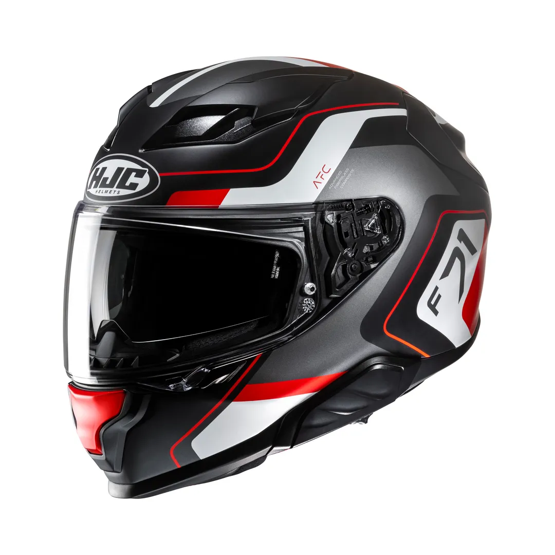 De HJC F71 heeft een lichtgewicht Advanced Fiberglass Composite Shell. Dit zorgt voor een goede pasvorm en comfort, ook tijdens lange ritten. De helm heeft een HJ-38 vizier met 99% UV-bescherming en een anti-kras coating.