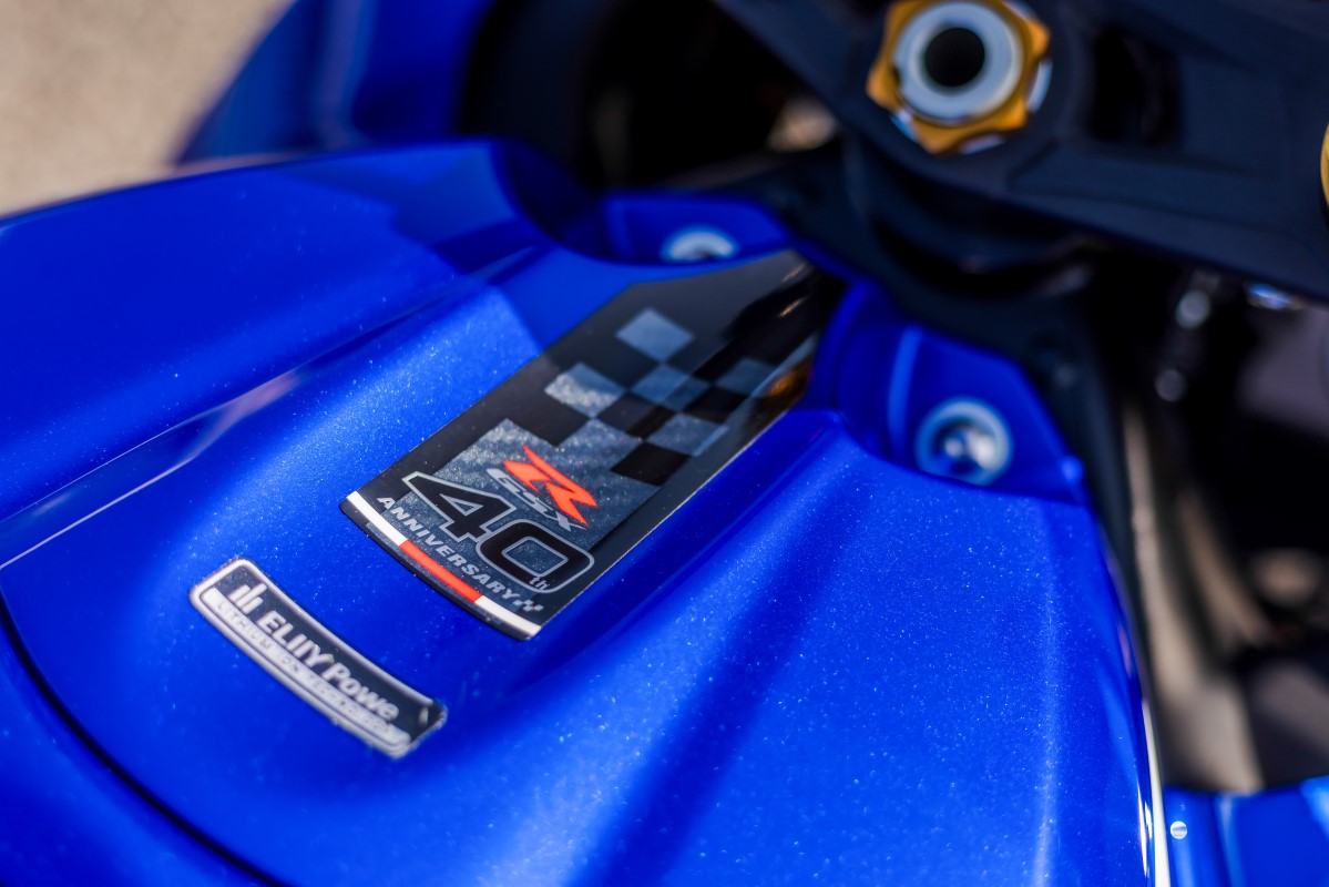 Als hommage aan het 40-jarig bestaan van de GSX-R-reeks, wordt het nieuwe model geleverd in drie kleurcombinaties. De kleuren grijpen terug op iconische GSX-R-racekleuren uit het verleden. Daarnaast zijn er speciale 40th Anniversary-logo’s en decals op de tank, de zijkanten en zelfs op de contactsleutel. Ook is er een GSX-R-logo op het zadel en op de uitlaatdemper. Bovendien zijn de remklauwen goudkleurig geanodiseerd afgewerkt.