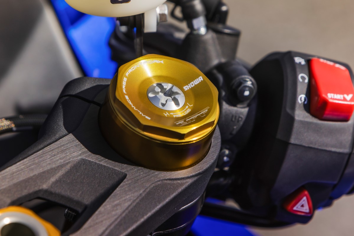 - Suzuki Traction Control System (STCS) met 10 standen (ook uit te schakelen) monitort wielslip, motortoerentallen, gasstand, versnellingspositie én hellingshoek via een IMU die over 3 assen die 6 richtingen meet.